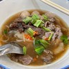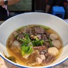 เห็นร้านนี้ในยูทูปมาสักพัก เพิ่งได้มีโอกาสมาลอง สั่งเส้นเล็กเนื้อรวมพิเศษ 60 บาท มีลูกชิ้น เนื้อสด เนื้อตุ๋น เอ็นแก้ว ผักเป็นผักบุ้งกับถั่วงอก ผักโรยเป็นผักชีฝรั่งเข้ากันดี รสชาติ เส้นเล็ก - ลวกมายังแข็งไปหน่อย แต่ด้วยความที่ซุปร้อนมาก รอสักพัก เส้นก็นุ่มลง เนื้อตุ๋น - ชอบเนื้อตุ๋นที่สุดในเครื่องทั้งหมด ต้มได้ดี นุ่ม ไม่เปื่อยแห้งจนเนื้อแตกเป็นเส้น เอ็นแก้ว - หนึบๆ คีบยากหน่อย ใช้ช้อนตักเอา ได...อ่านต่อ