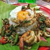 คิดไม่ออกว่าจะทานไรดีก้อแวะร้านนี้ มาถึงแล้วดูเมนูยังเลือกไม่ถูกอีกก้อไม่รู้จะว่ายังไงแล้ว เพราะเค้าขายไม่กี่อย่าง มีกระเพรา ข้าวผัดนั่นนี่ก้อเลือกกันไป ตามรีวิววงในมาอีกที เสิร์ฟใส่ถาดรองใบตองมาจิงด้วย น่ารักนะ ปริมาณอาหารก้อเท่ากับ 1 จานปกตินั่นแหละ เห็นเค้าแปะป้ายไว้ไม่ใส่ผงชูรสด้วยนะ แต่น่าจะหนักน้ำตาลแทน (ปกติเราปรุงอาหารไม่ใส่น้ำตาลจ้ะ) เหยาะพริกน้ำปลากลบหวานกันไป รอบหน้าเดวมาลองใหม่เผื่...อ่านต่อ